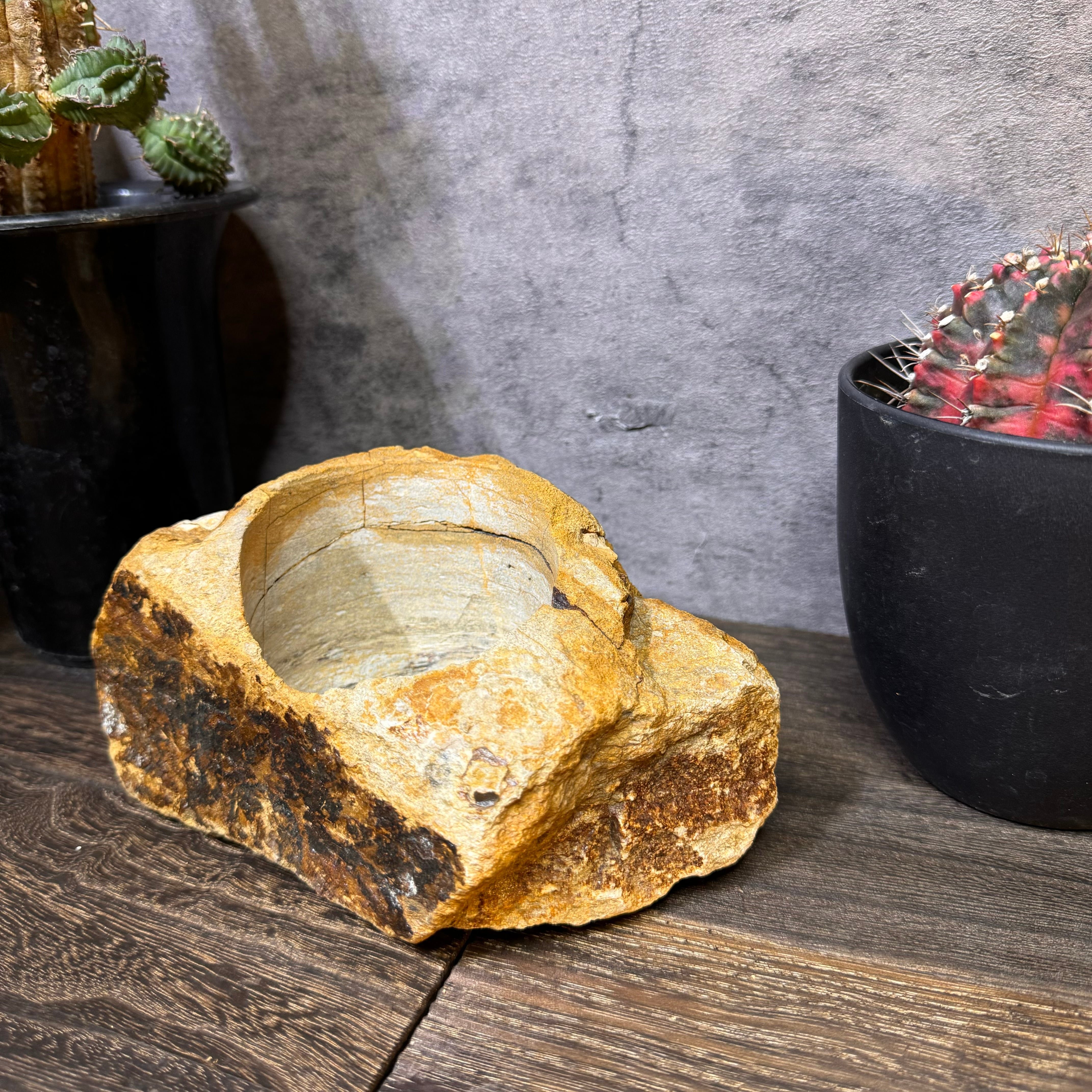 アガベ等の鉢植え、サボテン等の多肉植物を入れて活用するのもグッドだと思います。