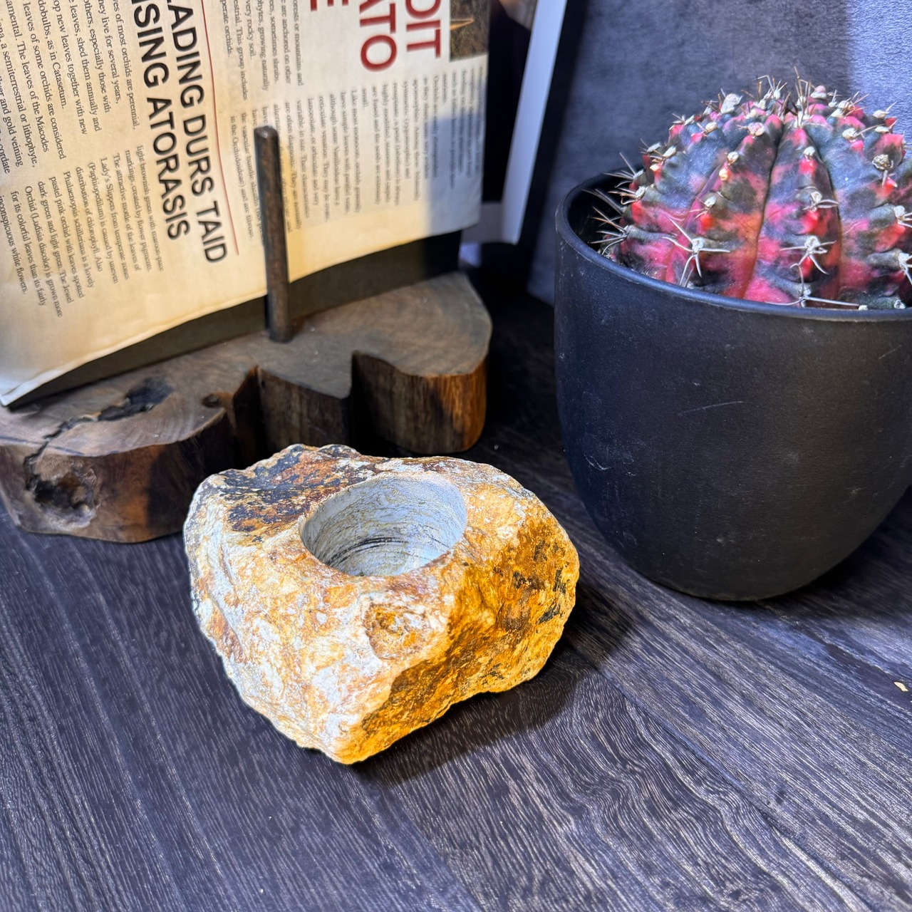 職人の手により加工の難しい石に穴を開け、インテリア鉢としても使用出来る様になっています