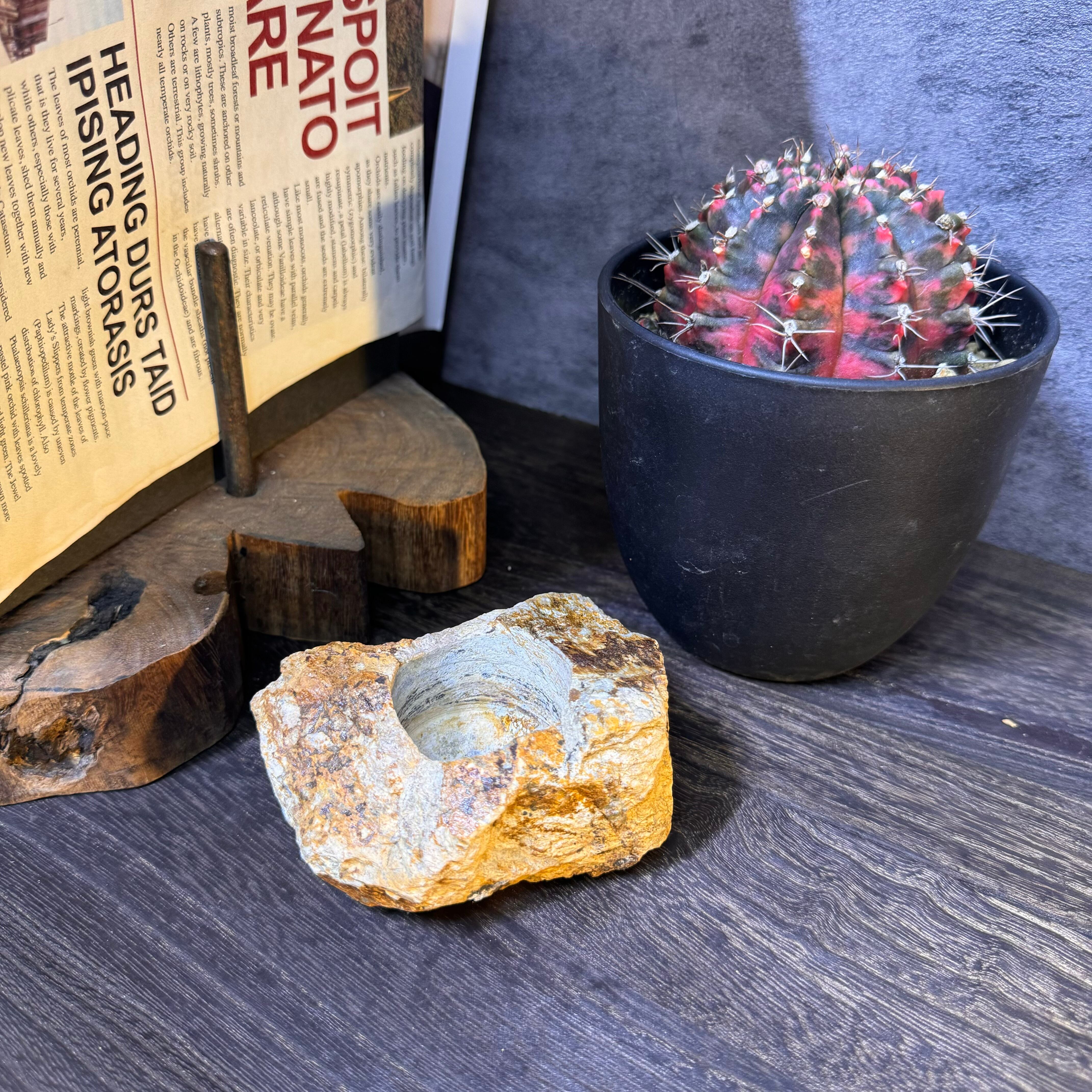 職人の手により加工の難しい石に穴を開け、インテリア鉢としても使用出来る様になっています