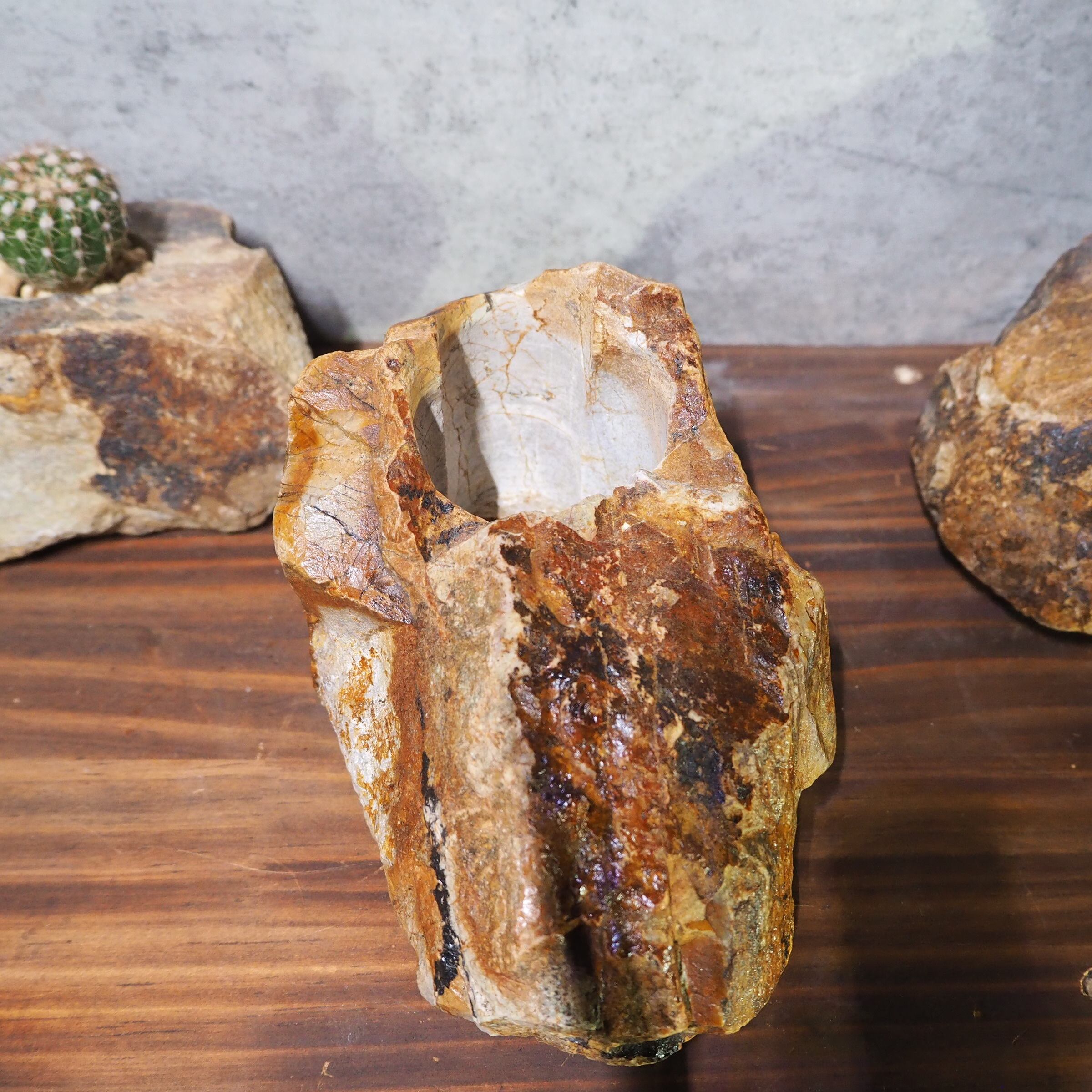 職人の手により加工の難しい石に穴を開け、インテリア鉢としても使用出来る様になっています。