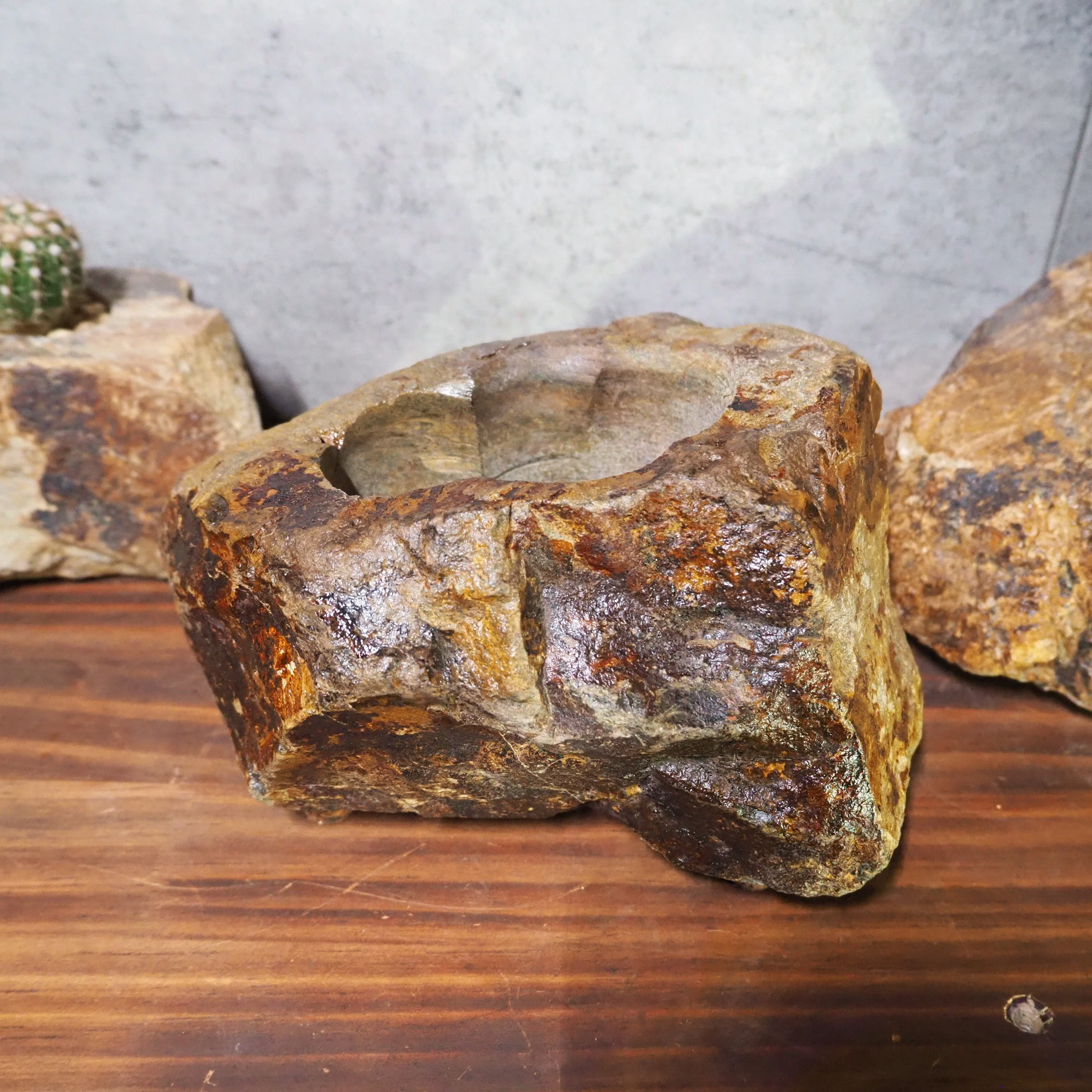 職人の手により加工の難しい石に穴を開け、インテリア鉢としても使用出来る様になっています。